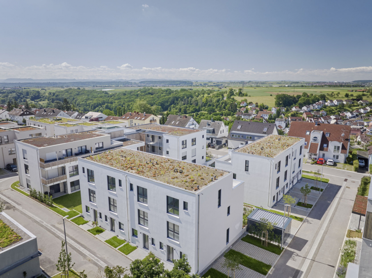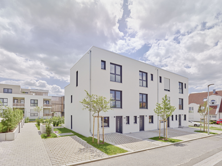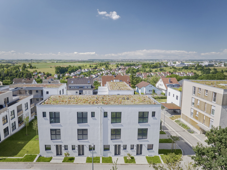 Im neuen Wohngebiet Ostfildern „Ob der Halde“ entstehen acht Reihenhäuser mit 135 m² und zwei Mehrfamilienhäuser mit 16 Wohnungen (40 – 95 m²) in Holzbauweise.