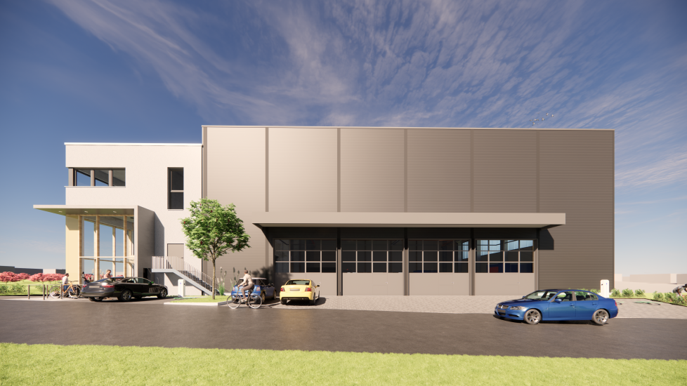 Ein besonderes Element ist die „Boxengasse“ mit direkter Außenanbindung, die sich zum Bestandsgebäude hin öffnet. Im Dachgeschoss entsteht eine Eventebene mit Veranstaltungssaal und Dachterrasse – mit beeindruckendem Blick auf den Hohenasperg.