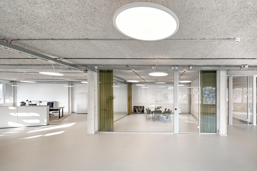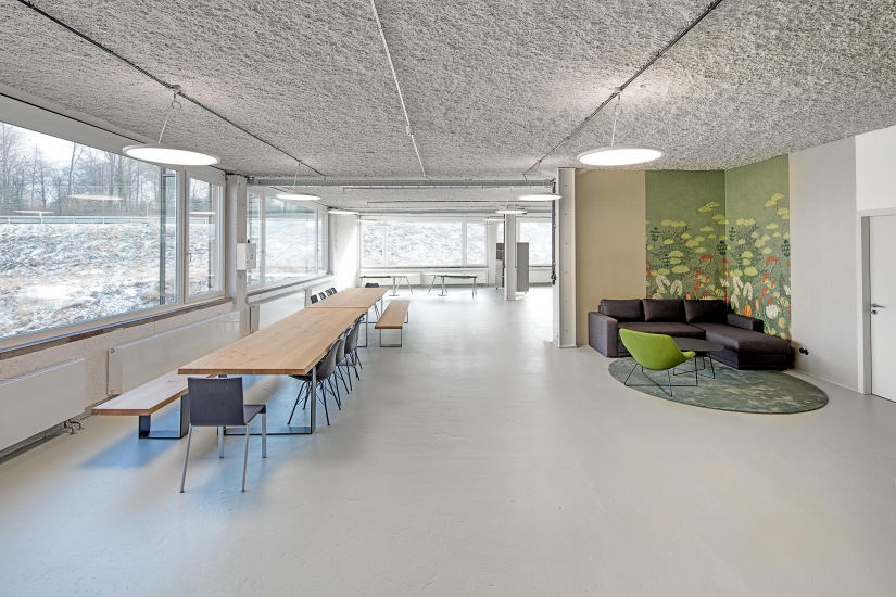 Der Umbau stellte besondere Herausforderungen: Decken wurden entfernt, statische Anforderungen erfüllt und hohe Brandschutzauflagen umgesetzt. Eine neue Fassade mit moderner Dämmung, ein Stahlanbau für Stabilität und eine Tiefgarage ergänzen das Konzept.